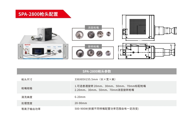 适用于处理各种大面积、形状较复杂材料的表面清洗活化,搭配旋转枪头