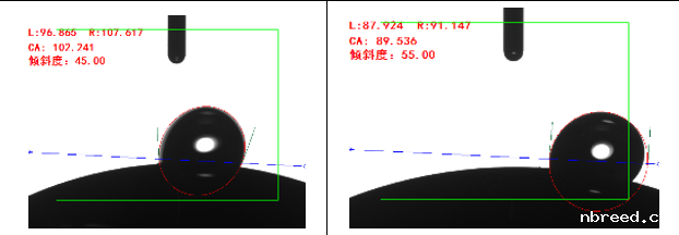 The inclined contact angle measuring instrument can effectively measure the rolling angle of the material surface, effectively characterize the forward and backward angle of the product surface, and evaluate the hydrophobic performance of the product surface.