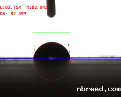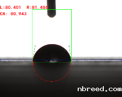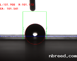 测量陶瓷片样品的亲疏水性能,测量方式:座滴法;测量方法:椭圆法。