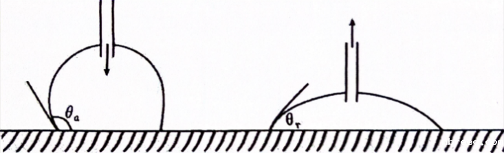 其中为黏附功,因此接触角滞后可以看作是黏附和摩擦的试题指示。为了充分静待一个平面,测量前进接触角和后退接触角并给出接触角滞后是非常重要的。