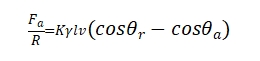 接触角滞后与更加直接的黏附滞后有密切联系,从物理学的角度来看,接触角滞后是液体在表面上流动时能量损耗的度量,接触角滞后与黏附的关系可以由以下公式表示: